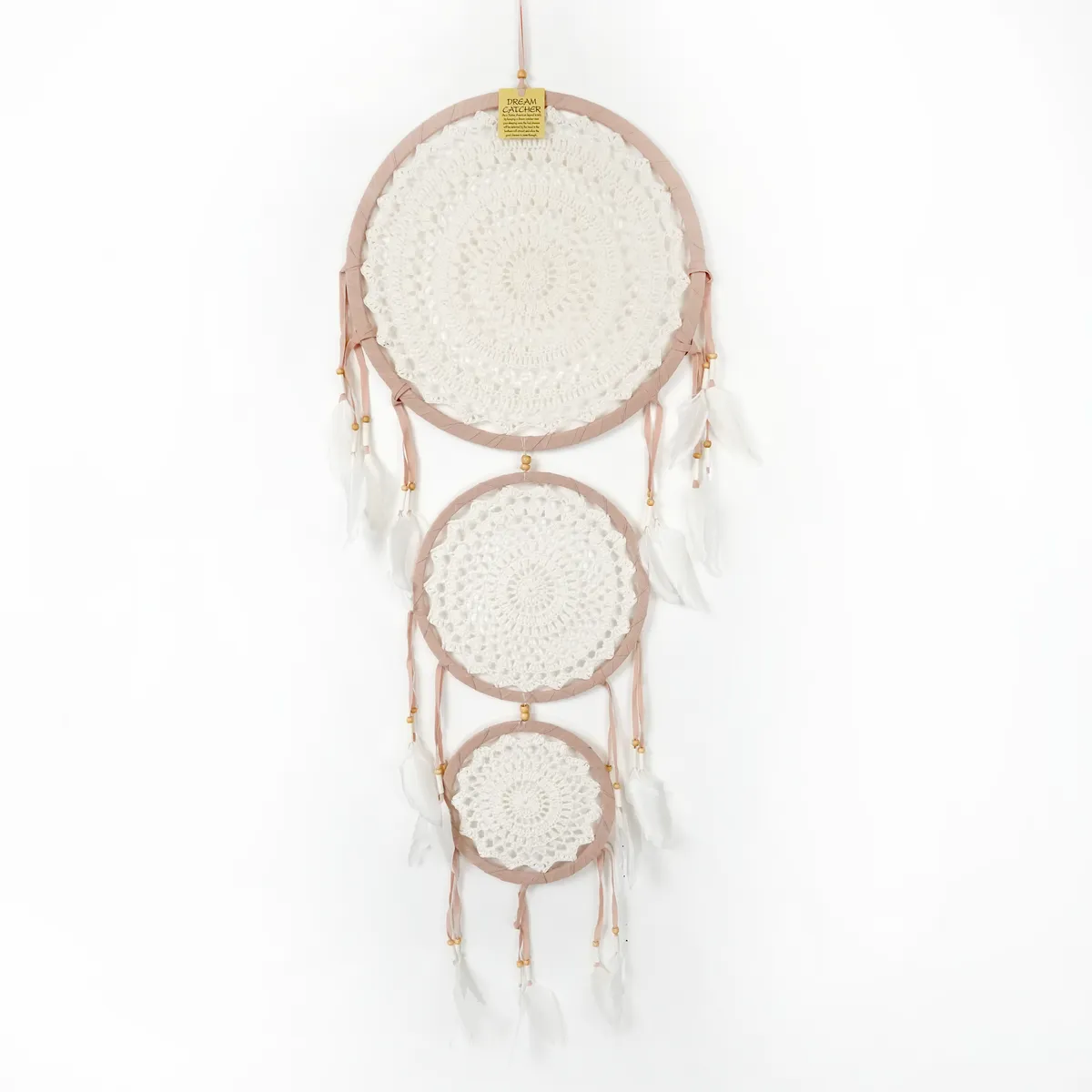 Hver drømmefanger er håndlaget med omhu, noe som gjør den helt unik.Derfor kan det forekomme små variasjoner i størrelse, form og farge – en del av sjarmen med ekte håndverk. Ingen drømmefanger er helt lik en annen, noe som gjør din helt spesiell.