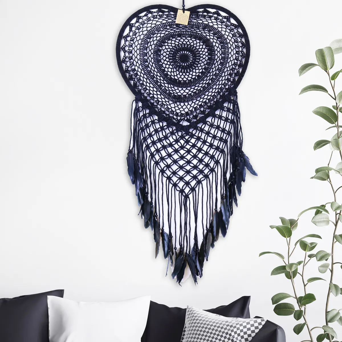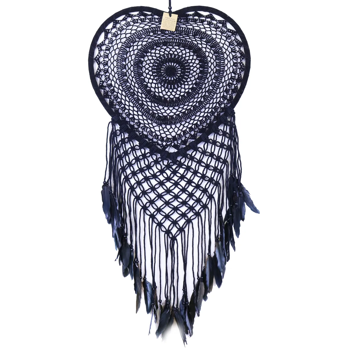 Drømmefanger Heklet Hjerte Sort