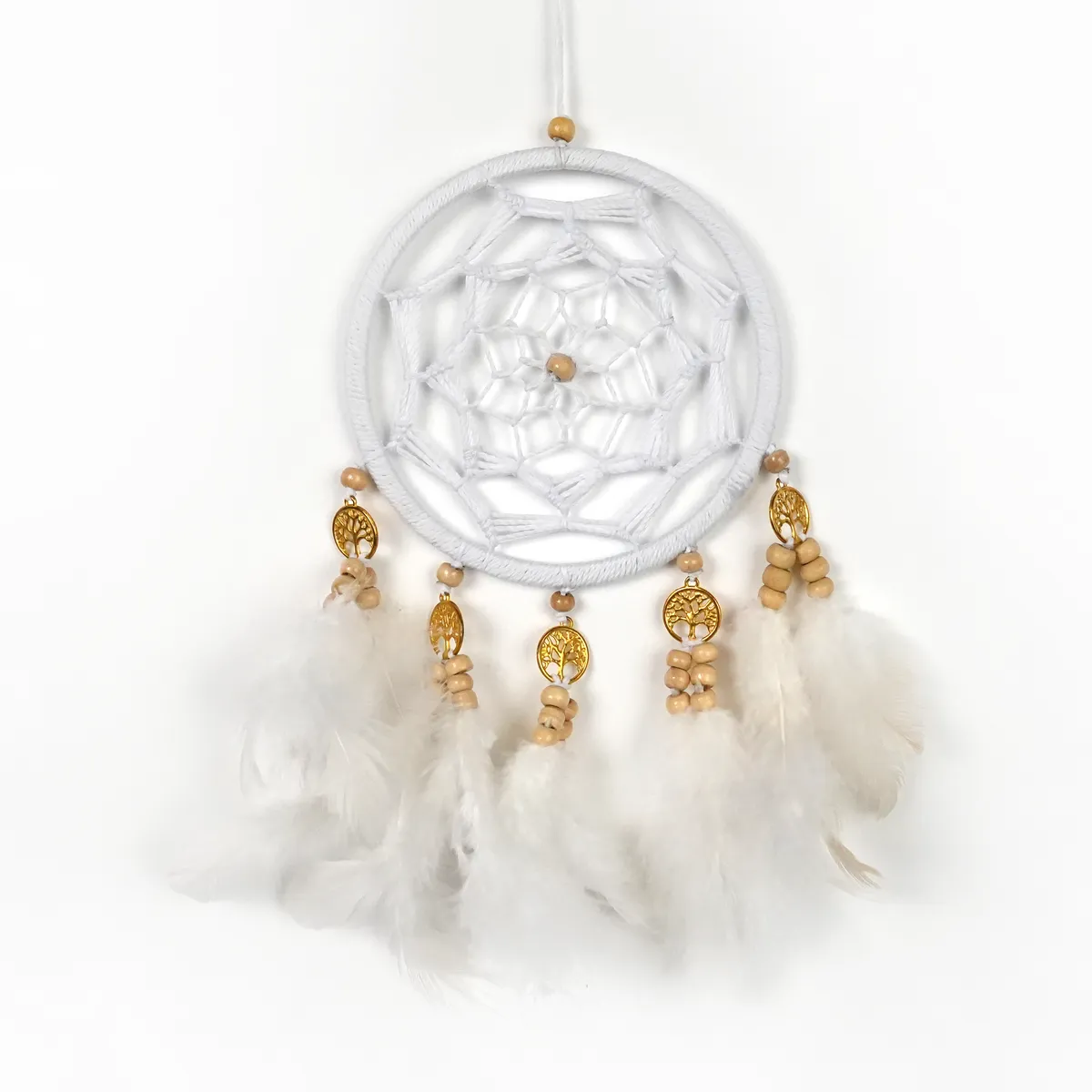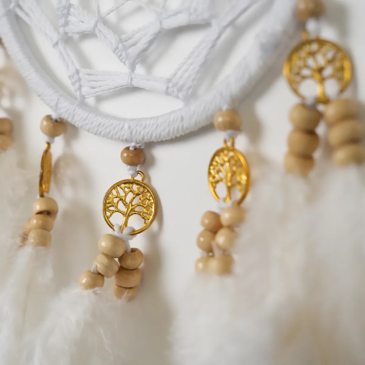 Hver drømmefanger er håndlaget med omhu, noe som gjør den helt unik.Derfor kan det forekomme små variasjoner i størrelse, form og farge – en del av sjarmen med ekte håndverk. Ingen drømmefanger er helt lik en annen, noe som gjør din helt spesiell.