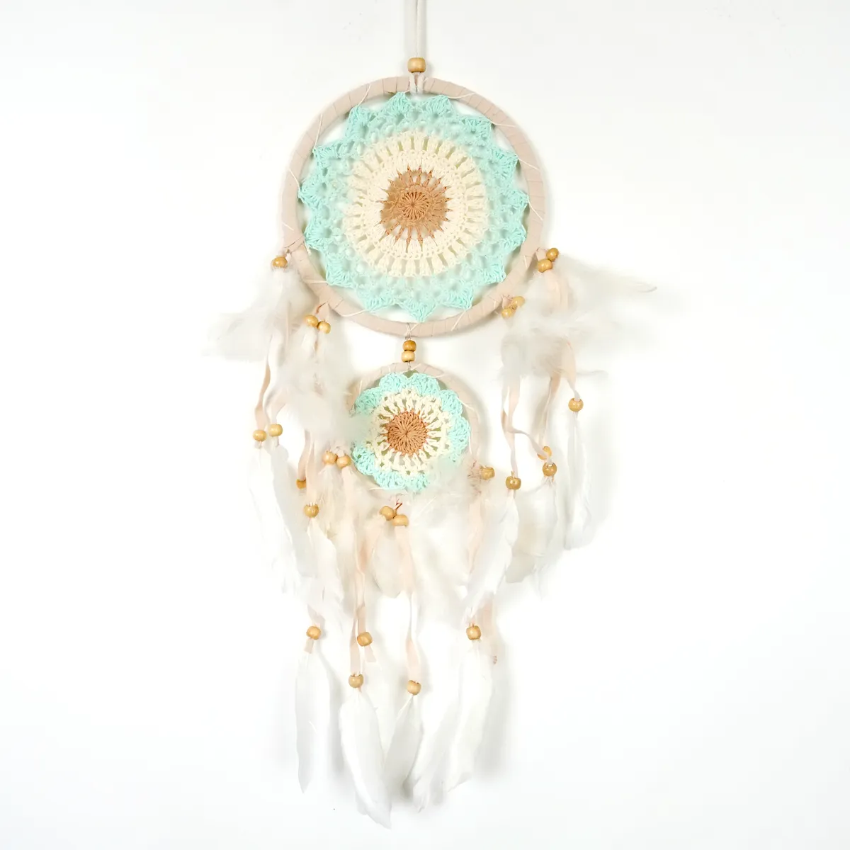 Hver drømmefanger er håndlaget med omhu, noe som gjør den helt unik.Derfor kan det forekomme små variasjoner i størrelse, form og farge – en del av sjarmen med ekte håndverk. Ingen drømmefanger er helt lik en annen, noe som gjør din helt spesiell.