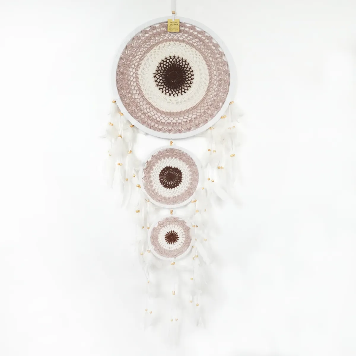 Hver drømmefanger er håndlaget med omhu, noe som gjør den helt unik.Derfor kan det forekomme små variasjoner i størrelse, form og farge – en del av sjarmen med ekte håndverk. Ingen drømmefanger er helt lik en annen, noe som gjør din helt spesiell.