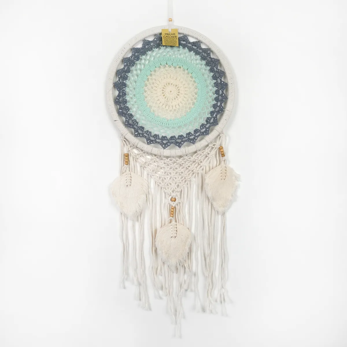 Hver drømmefanger er håndlaget med omhu, noe som gjør den helt unik.Derfor kan det forekomme små variasjoner i størrelse, form og farge – en del av sjarmen med ekte håndverk. Ingen drømmefanger er helt lik en annen, noe som gjør din helt spesiell.