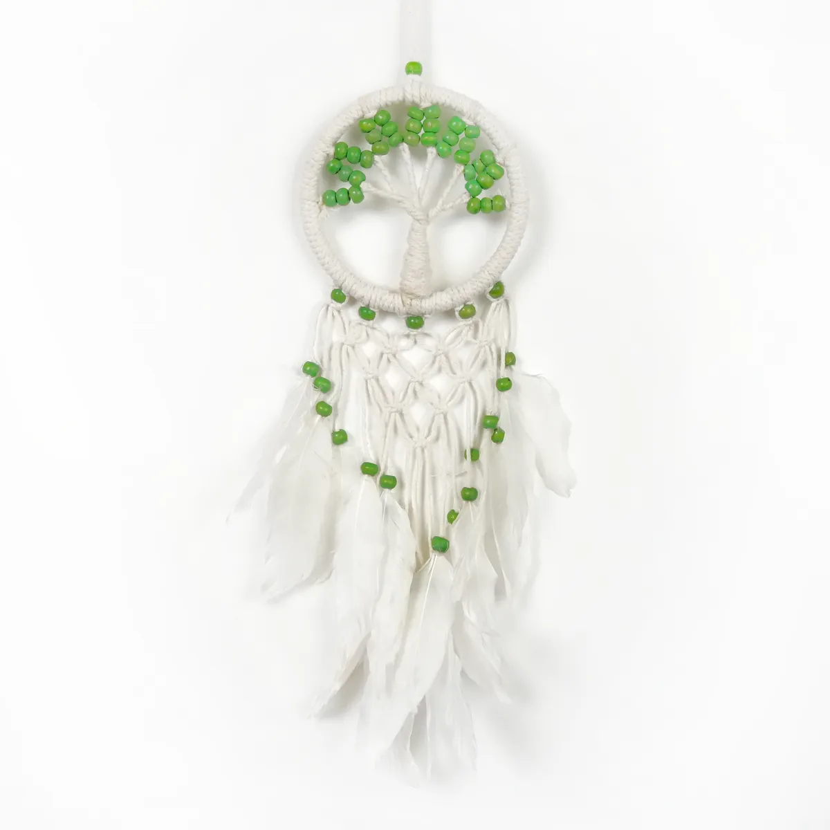 Hver drømmefanger er håndlaget med omhu, noe som gjør den helt unik.Derfor kan det forekomme små variasjoner i størrelse, form og farge – en del av sjarmen med ekte håndverk. Ingen drømmefanger er helt lik en annen, noe som gjør din helt spesiell.