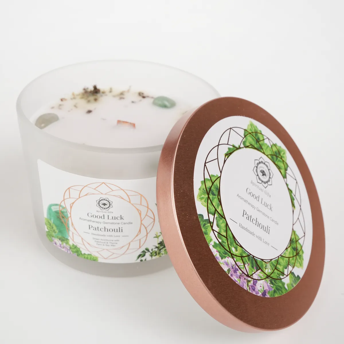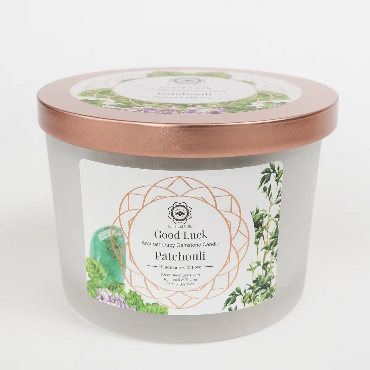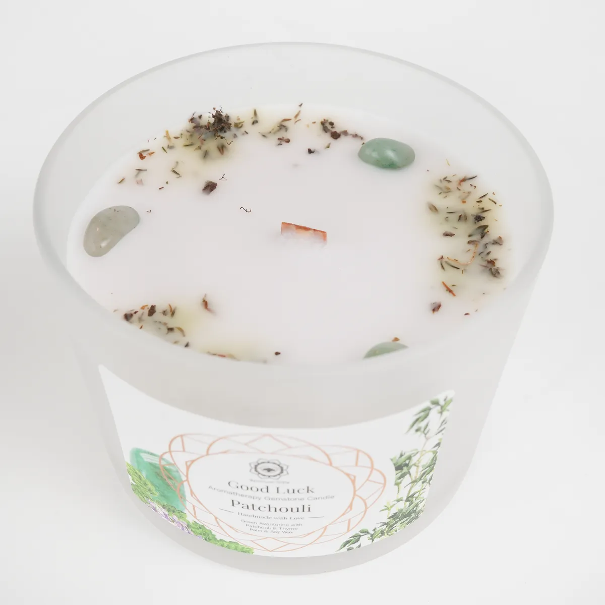Good Luck er et duftlys laget av palme- og soyavoks, beriket med jordende patchouli, frisk timian og grønn aventurin-krystaller. Duften er varm, urteaktig og balanserende og skaper en følelse av stabilitet, optimisme og positiv energi. Grønn aventurin forbindes med flaks, muligheter og velstand, noe som gjør dette lyset ideelt for nye begynnelser, intensjoner og når du ønsker å invitere lykke og harmoni. Brennetid ca. 30–32 timer.