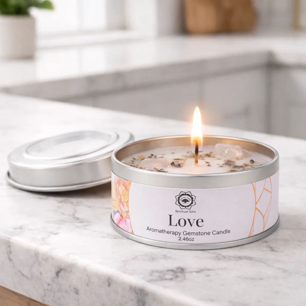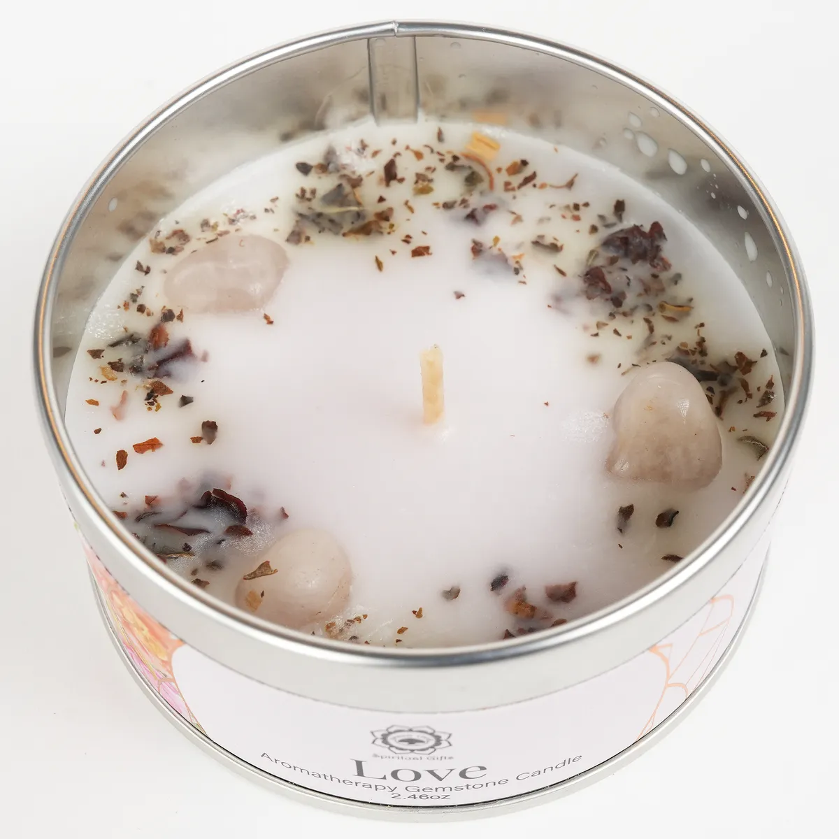 Love er et duftlys laget av palme- og soyavoks, beriket med tørkede roseblader, basilikum og rosenkvarts-krystaller. Duftkombinasjonen er myk, varm og harmonisk og skaper en kjærlig og beroligende atmosfære. Rosenkvarts forbindes med kjærlighet, omsorg og emosjonell balanse, noe som gjør dette lyset perfekt for avslapning, meditasjon og stunder av nærvær.