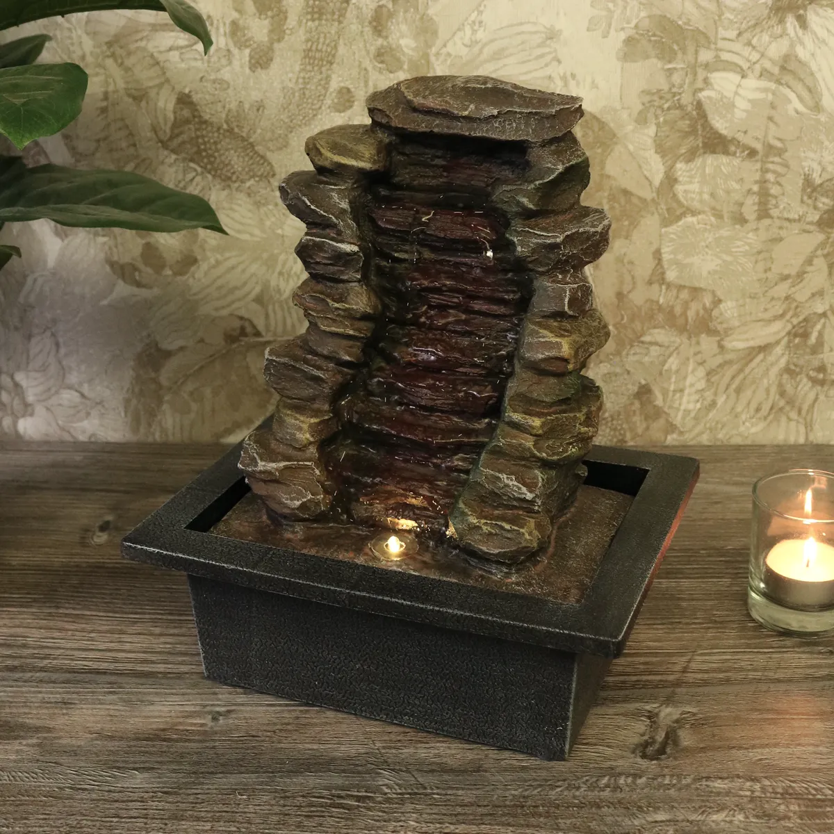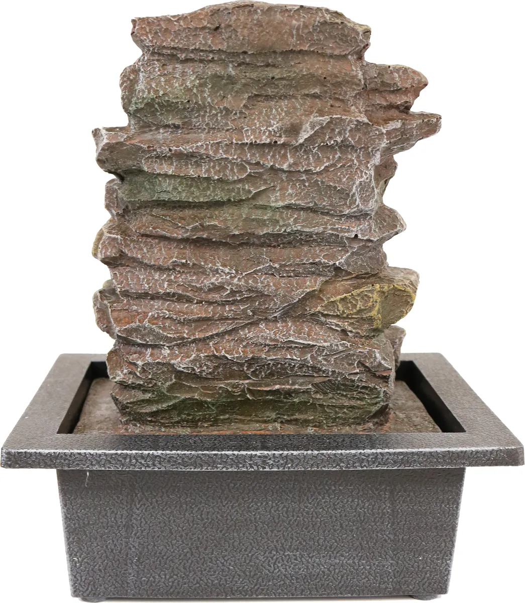 Denne fine fontenen i form av en stein i naturlig farge produserer en fantastisk avslappende lyd fra det rislende vannet.