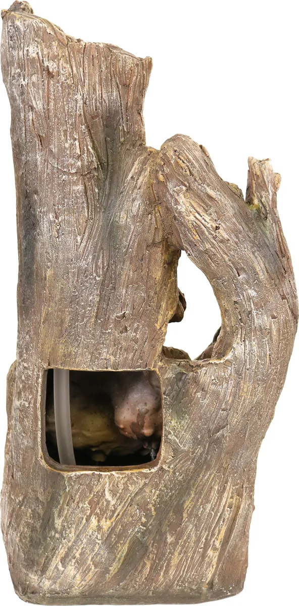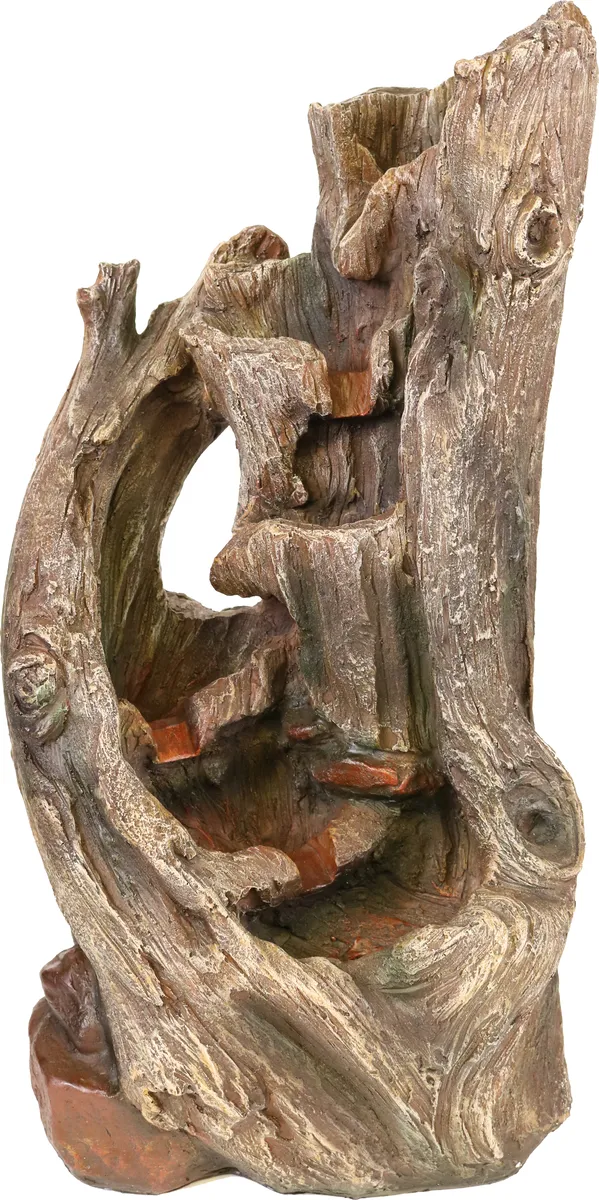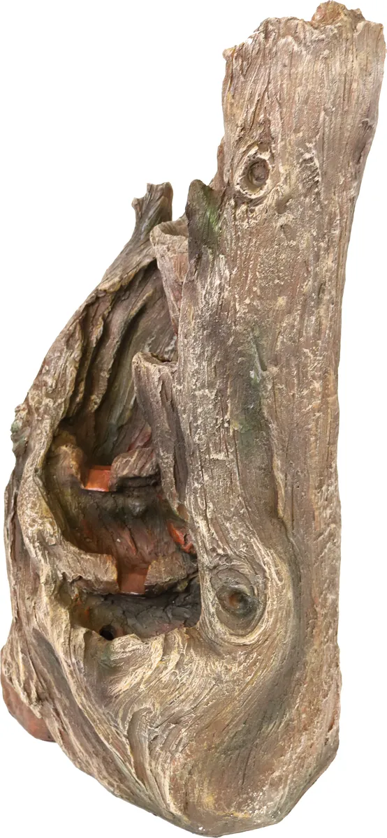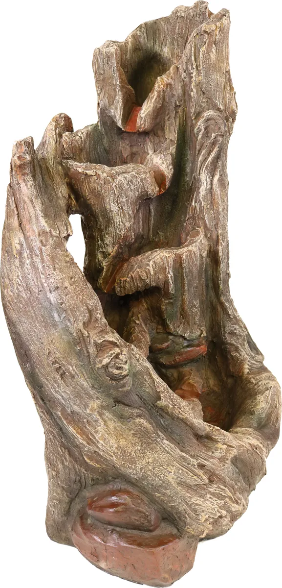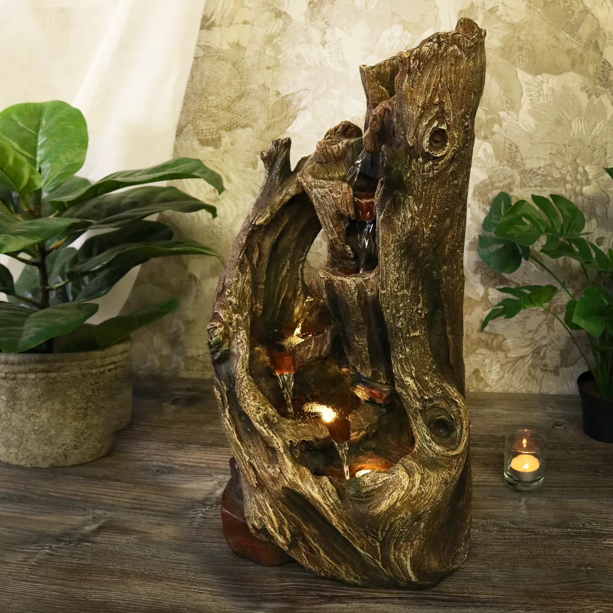 Denne vakre fontenen som ser ut som en gammel trestamme har tre fossefall, som lager en herlig avslappende lyd fra det rislende vannet. LED-lampen lyser og er et varmt og veldig dekorativt, effektivt lys