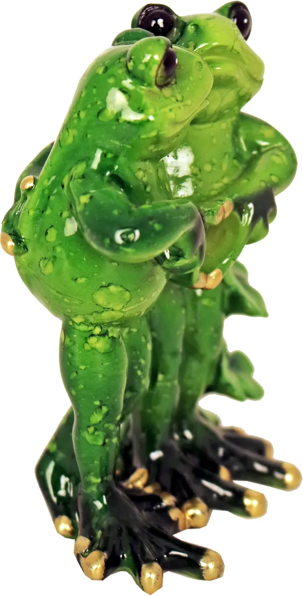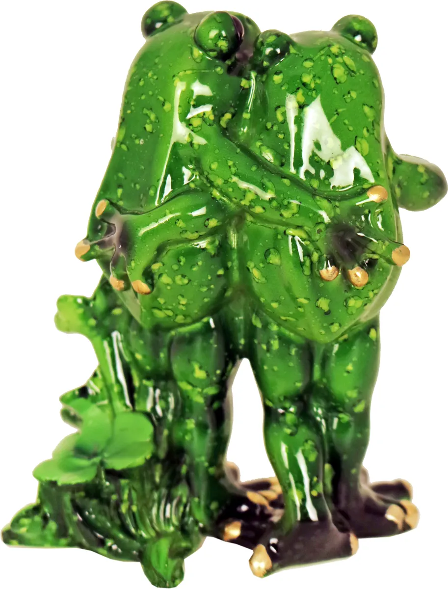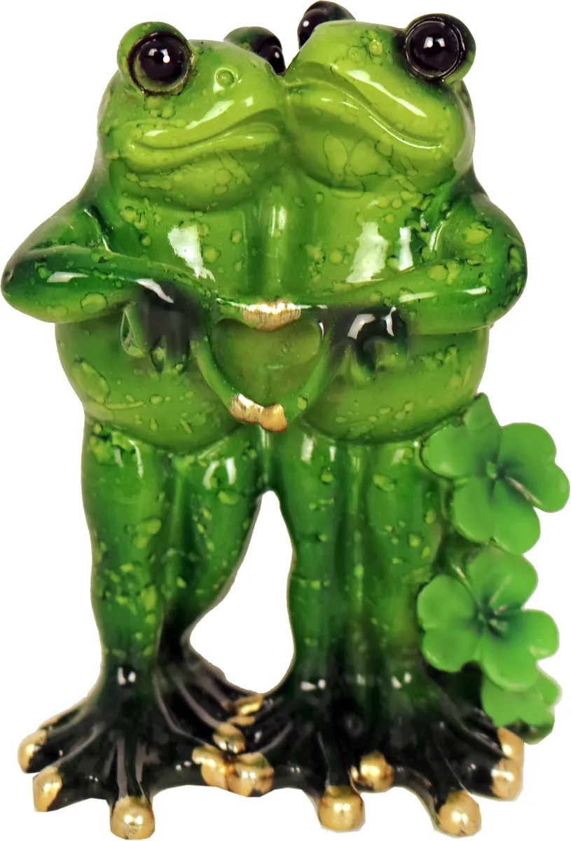 Frosker elsker par med firkløver som symboliserer lykke. De skaper et hjerte med hendene. Håndmalt pynteting med fine detaljer og nydelig grønn farge.