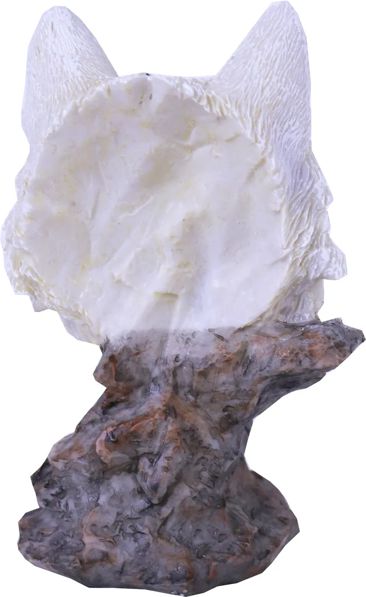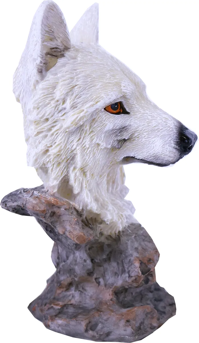 Hvit ulvestatue hode. Ulvefiguren er pent håndmalt for å få frem detaljene. perfekt for de som elsker ulv.