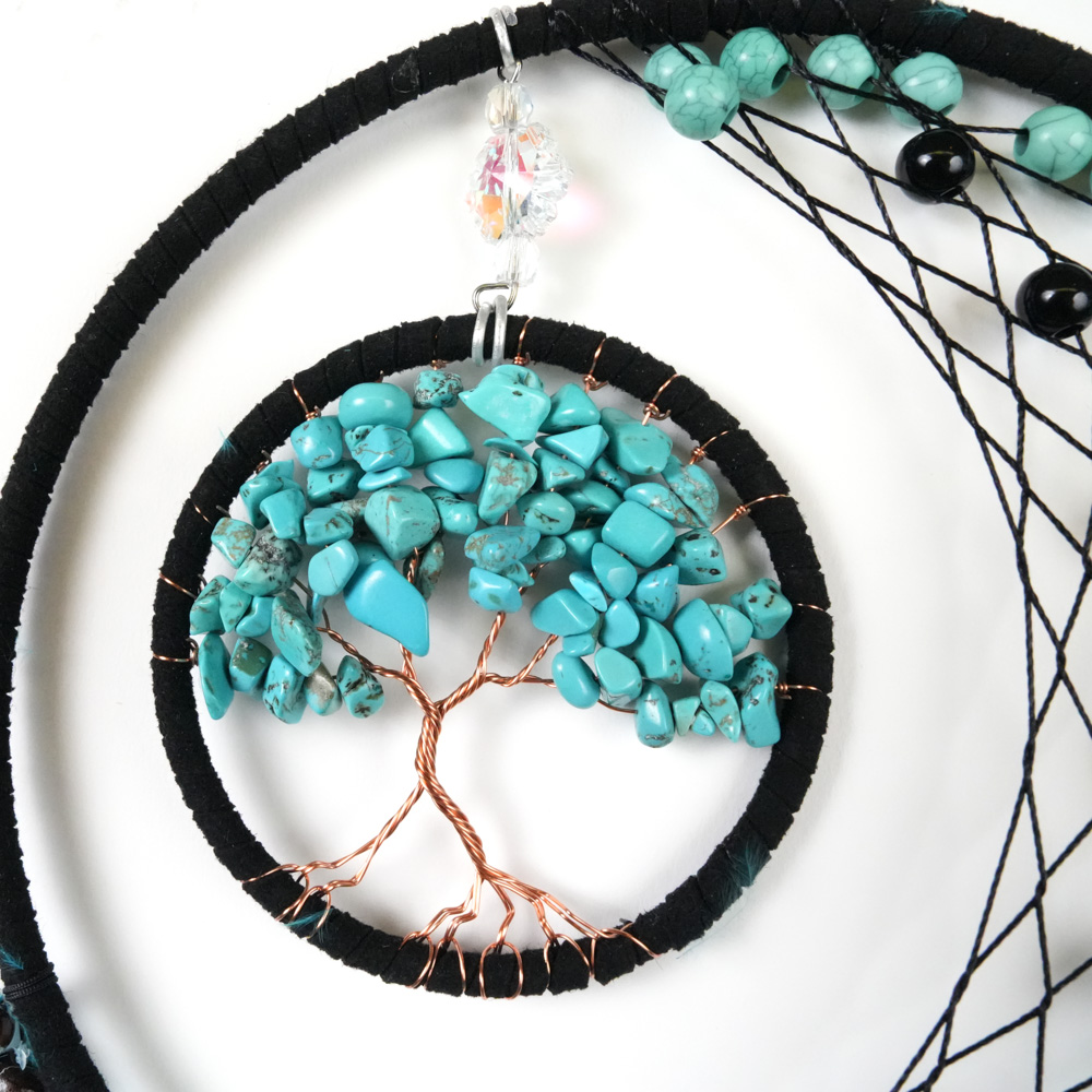 Hver drømmefanger er håndlaget med omhu, noe som gjør den helt unik.Derfor kan det forekomme små variasjoner i størrelse, form og farge – en del av sjarmen med ekte håndverk. Ingen drømmefanger er helt lik en annen, noe som gjør din helt spesiell.