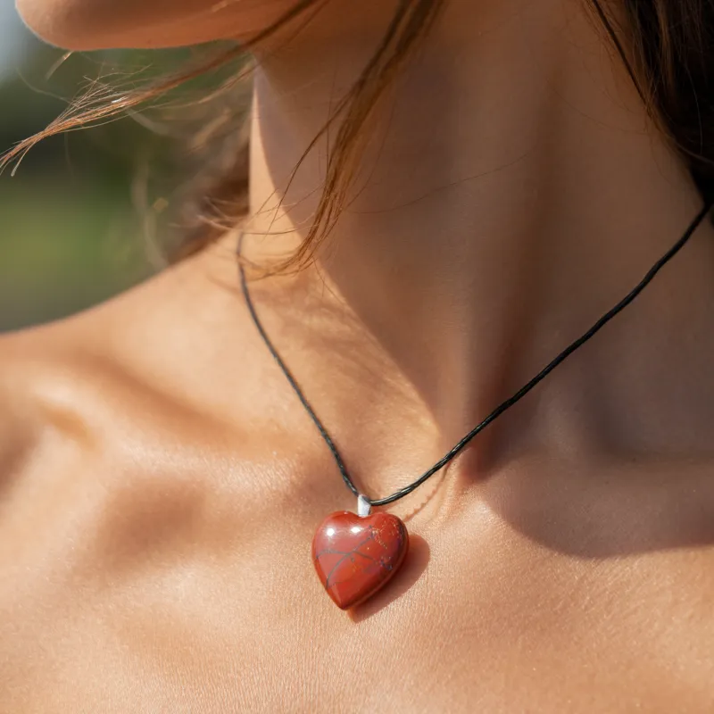 Krystall Hjerte Rød Jaspis Anheng