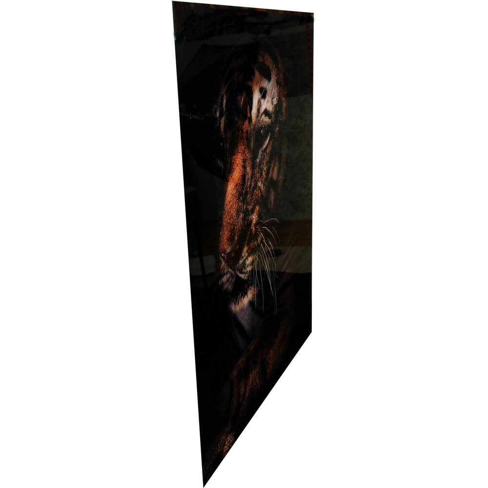 Høykvalitetstrykk på herdet glass for en mer unik og luksuriøs følelse. Fargerikt maleri med motiv av nærbilde av en vakker gammel tiger. Perfekt for de som ønsker moderne kunst, dyremalerier, afrikanske dyr, lage collager, vakre malerier og interiør til hjemmet.