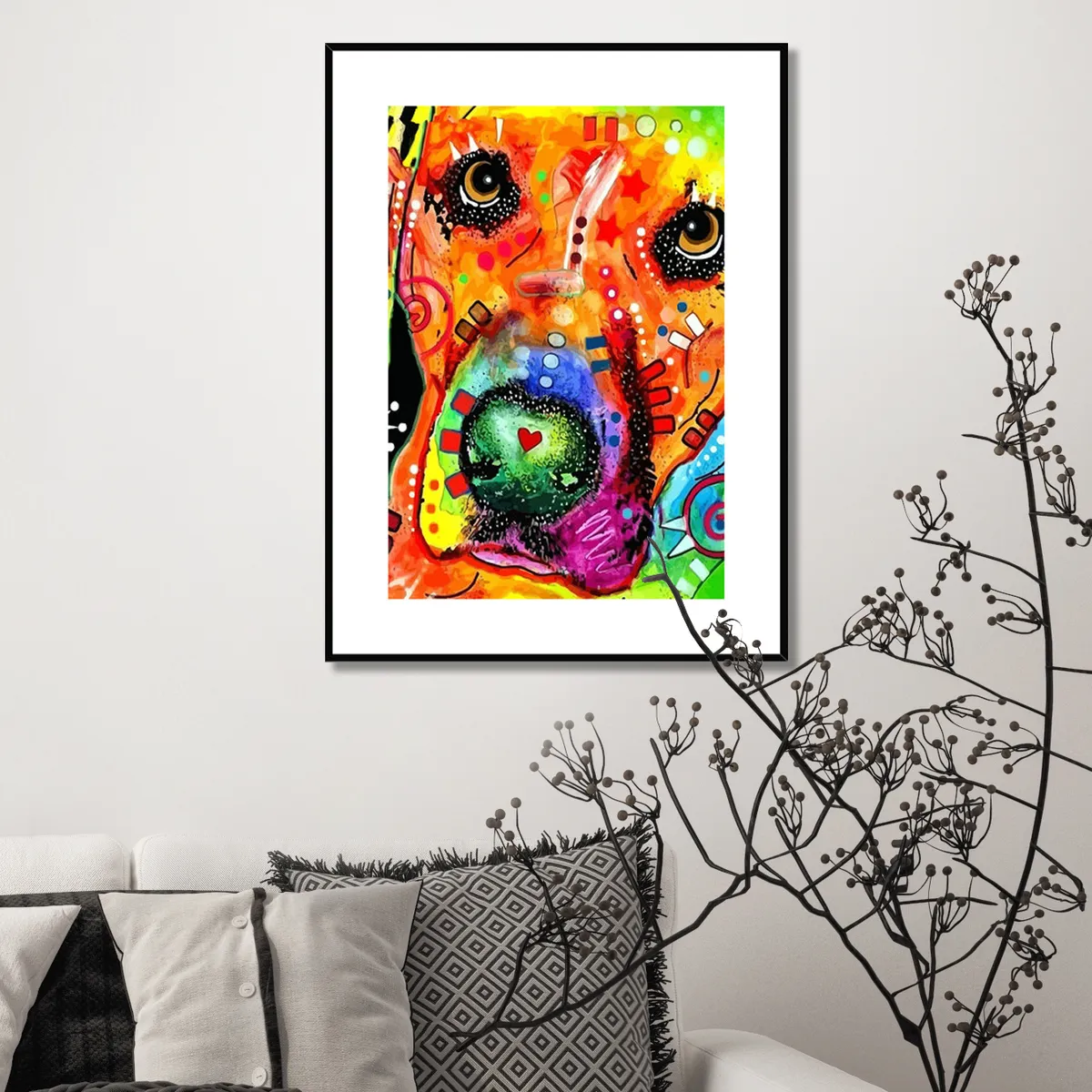 Høykvalitetstrykk på glass for en mer unik og luksuriøs følelse. Fargerikt Pop Art Bulldog hundemaleri, graffiti inspirert maleri. Perfekt for de som liker moderne malerier, dyremalerier, lage collager, gatekunst og kul hjemmeinnredning.