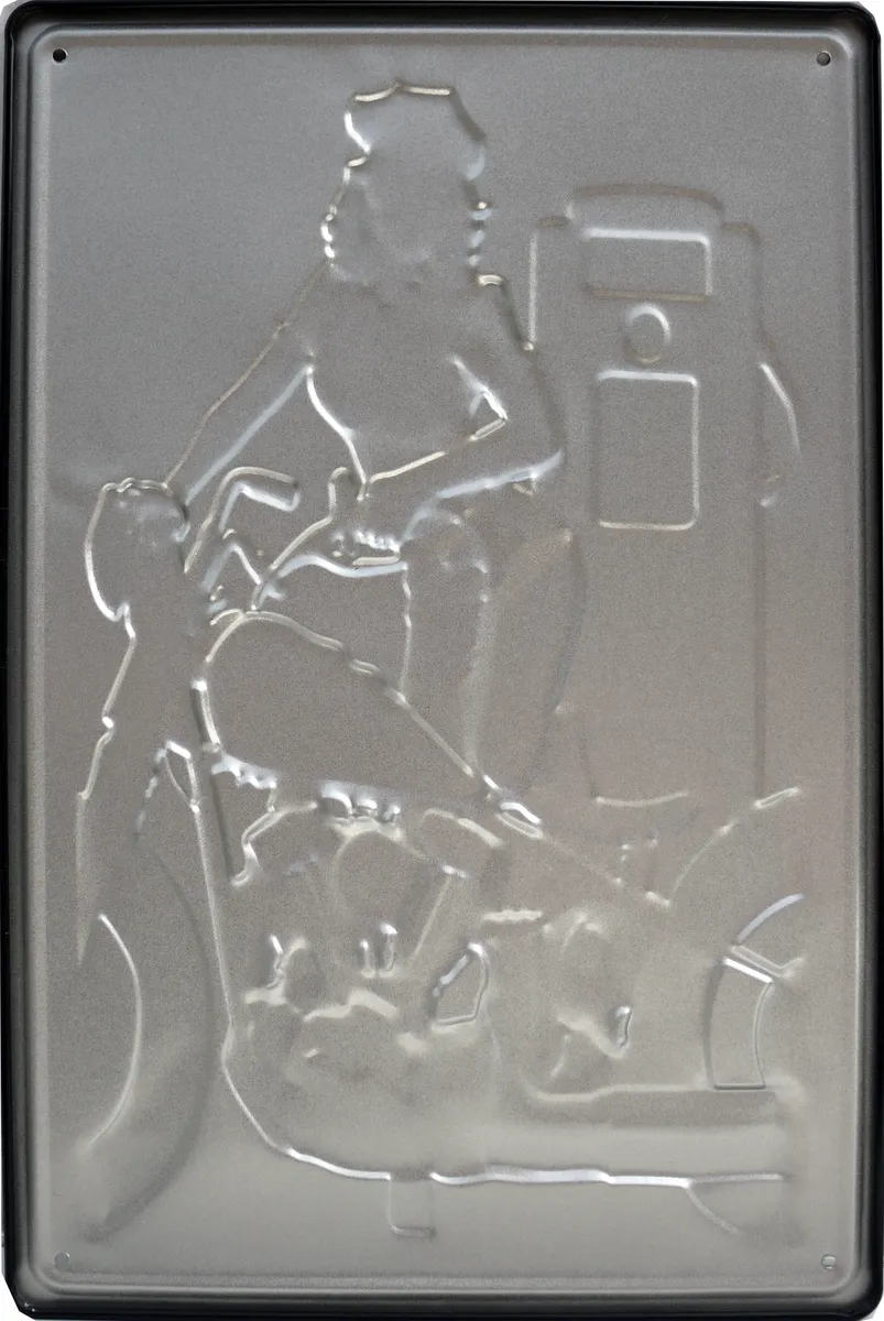 Metallbilde 3D Pin Up. Perfekt for de som liker motorsykler, oldies, dekor til garasjen, baren eller for de som liker gamle retro reklameskilt.