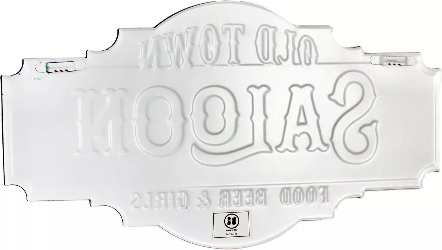 Metallplate med teksten 'Old Town Saloon, Food, Beer & Girls' pent laget som et gammelt slitt skilt fra gamle western og cowboy tider. Perfekt for samlingen av retro skilt, for baren, for garasjen, de som liker bar hangouts, pynt for baren og hjemmedekorasjon hjemmet, for de som liker gamle retro reklame plakater og nostalgi.