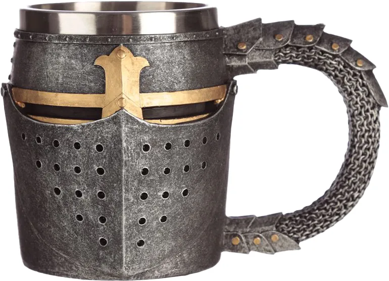 Ridderkrus med ridderrustning. Kult håndmalt så hver minste detalj i hjelmen skal være synlig. Koppen er laget av rustfritt stål. OPPMERKSOMHET! Vaskes for hånd, IKKE oppvaskmaskin!