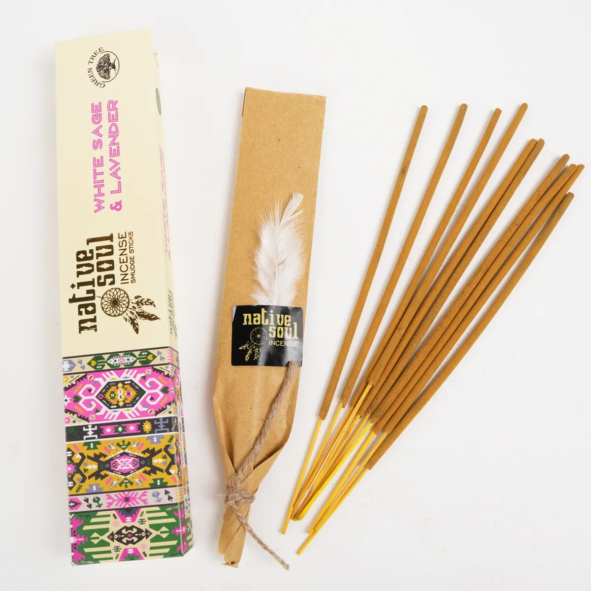 Når du har sørget for at røkelsespinnen sitter godt fast i røkelsesholderen, tenner du på enden av pinnen og venter noen sekunder. Når røkelsen har fått glød, blåser du ut flammen – gløden skaper røyken og sprer duften.
