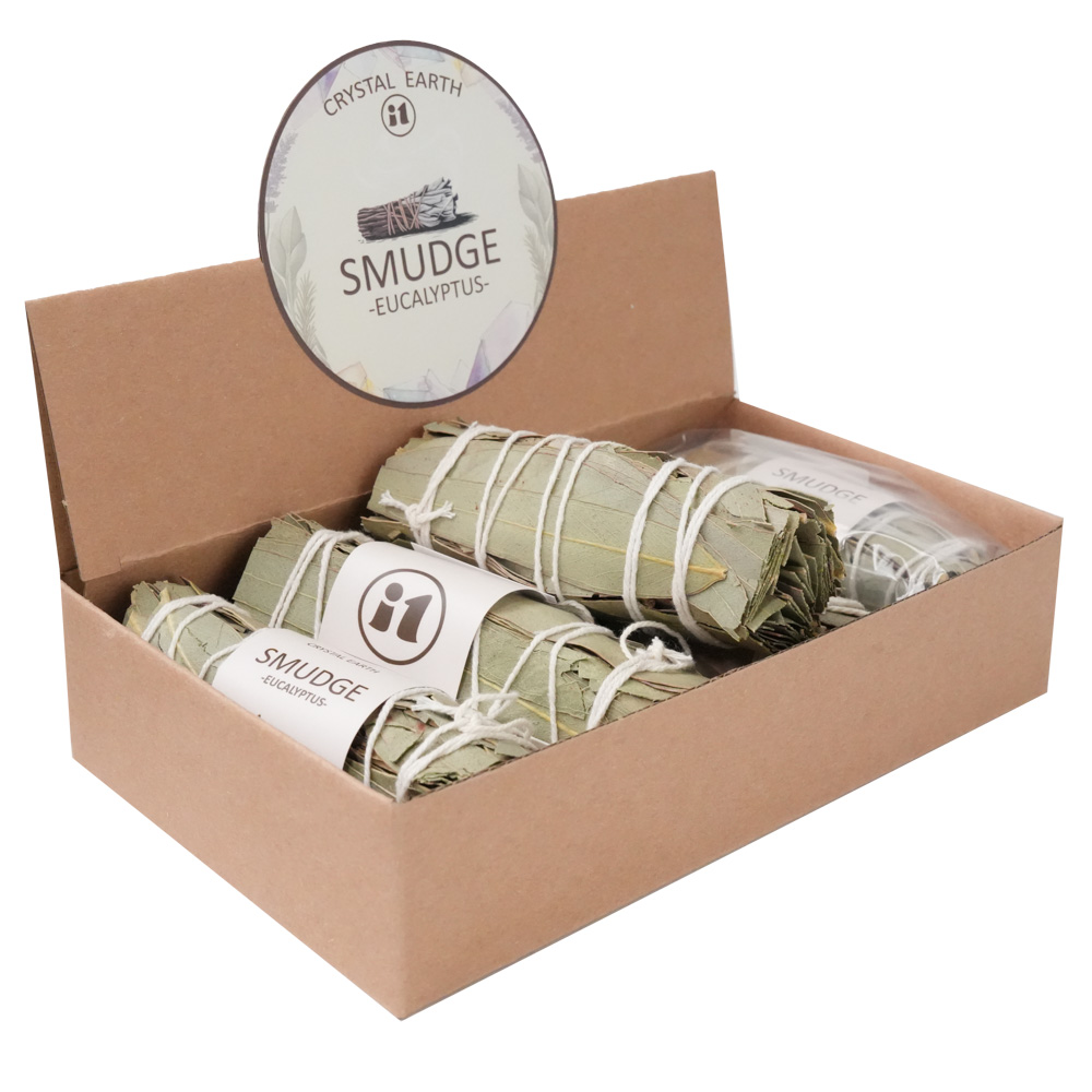 Prisen er per stykk!Opprinnelsesland: California.En smudge laget av eukalyptus brukes ofte for renselse, fornyelse og for å åpne sinnet. Eukalyptusrøyken har en frisk, klar duft som skaper en oppkvikkende og balanserende atmosfære i hjemmet eller under seremonier.