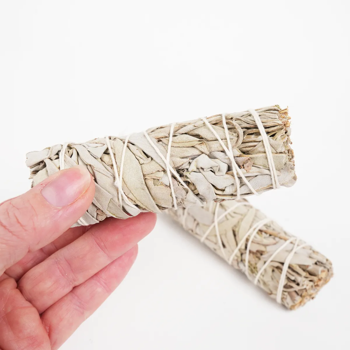 Opprinnelsesland: Mexico .En hvit salvie-bunt (smudge stick) brukes ofte for renselse og energibalanse. Tenn forsiktig enden av bunten til den begynner å gløde og avgi røyk. Blås ut flammen og la den gløde sakte. Før røyken rundt deg selv, i rommet eller over gjenstander du vil rense. Ha alltid et ildfast fat eller en skål i nærheten for å fange aske og slukke bunten når du er ferdig. La aldri en tent smudge stå uten tilsyn.