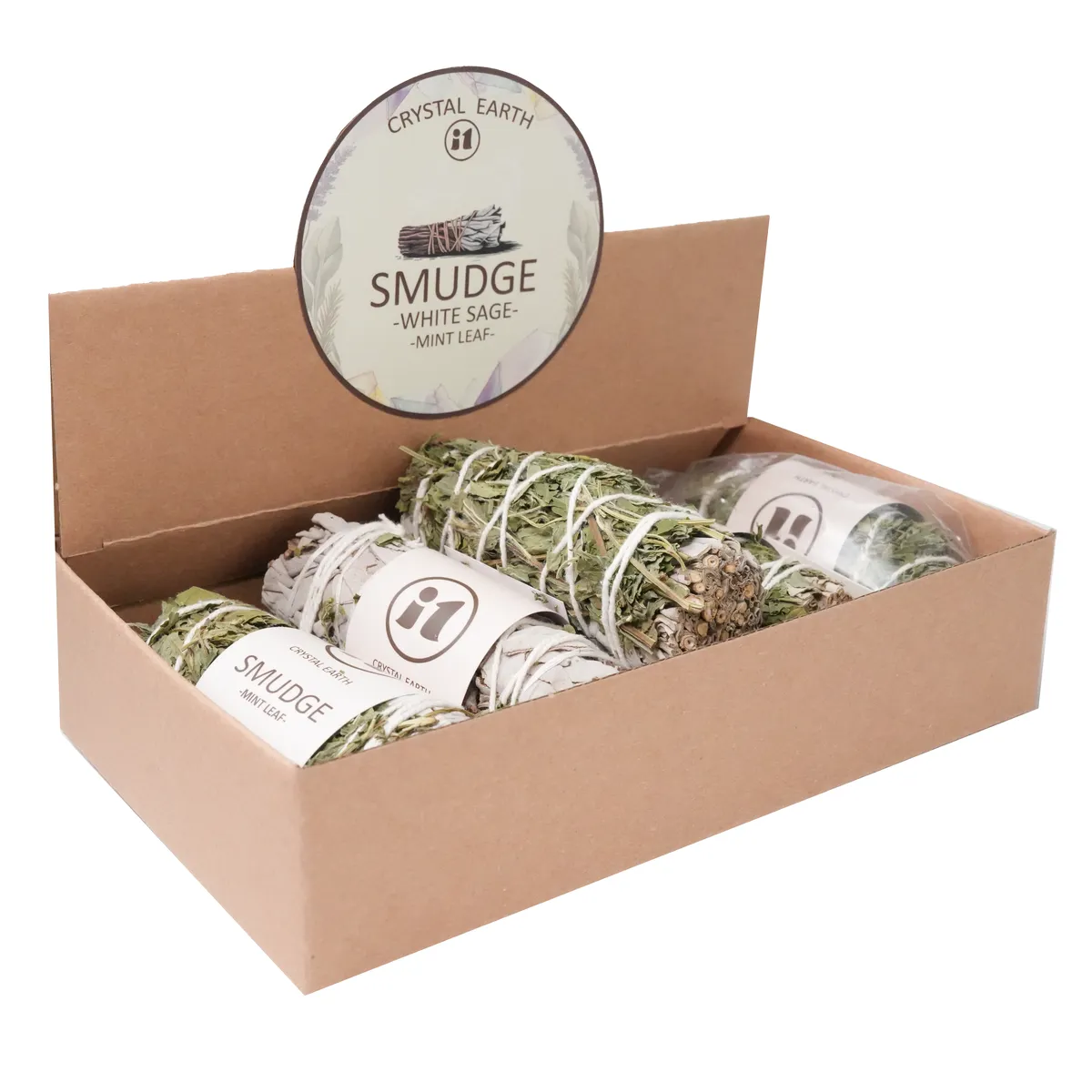 Prisen er per stykk!Opprinnelsesland: California.En hvit salvie-smudge med mynteblader kombinerer salvieens rensende kraft med myntens friske, oppkvikkende energi. Røyken sprer en klar og livlig duft som skaper en ren, harmonisk og fornyende atmosfære i hjemmet eller under seremonier.