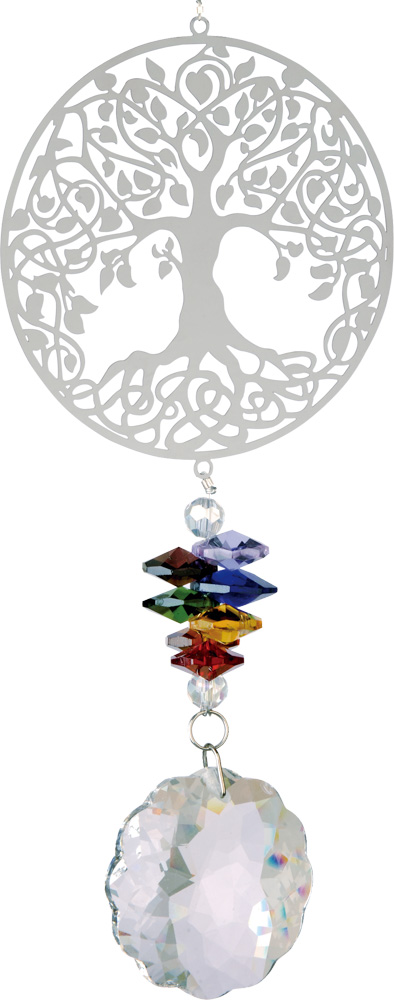 Dekorativ tre spiral vindspinner i metall med flere krystaller som fint roterer i vinden og gir et effektivt lysspill fra solen. Perfekt hagepynt, stemningsfullt også som innendørs dekorasjon.