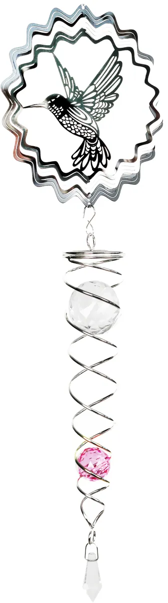 Dekorativ sommerfugl spiral vindmølle i metall med to glaskrystaller som roterer pent i vinden og gir et effektivt lett spill av solen. Perfekt hagedekorasjon, stemningsfull selv som et ornament innendørs.